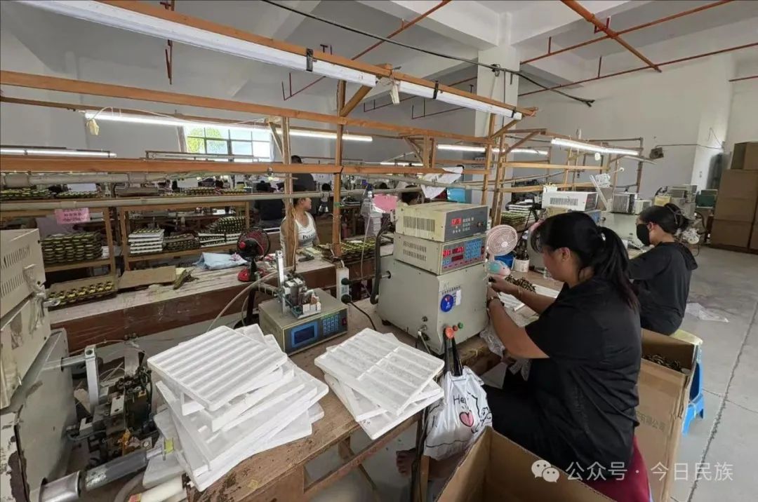 在五和家园内的电子元件加工厂,工人们正忙碌地安装电子元件。据车间负责人哏小艳介绍,这个车间是盈江县就地就近就业帮扶车间,这里的工人大都是五和家园以及附近村寨的妇女。她们在家门口就业,工作时间灵活,可以照顾老人小孩,还能有一份每月2000余元的收入。