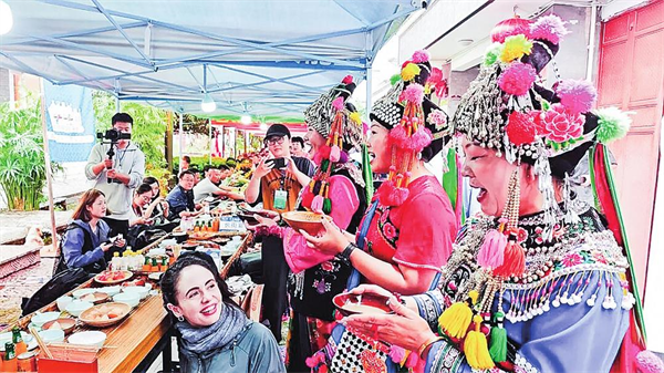 据悉,本届民歌节持续至21日,小河淌水少年合唱团专场、民间花灯广场舞展演、非遗晚会、“弥渡民歌大家唱”合唱晚会等连续8场主题晚会将轮番上演。值得一提的是,节庆期间还同步举办2025春沐源大理小河淌水半程马拉松、王者荣耀全国大赛海选赛(弥渡站)及全民电竞大赛,通过“文化+体育+电竞”的创新融合,拓展文旅新场景、激发县域新活力。此外,持续9天的长街宴更是亮点纷呈,从乡愁宴、豆腐宴到牛头宴,每天一乡镇一主题,让游客在宴席间感受非遗。(记者 李美溶)