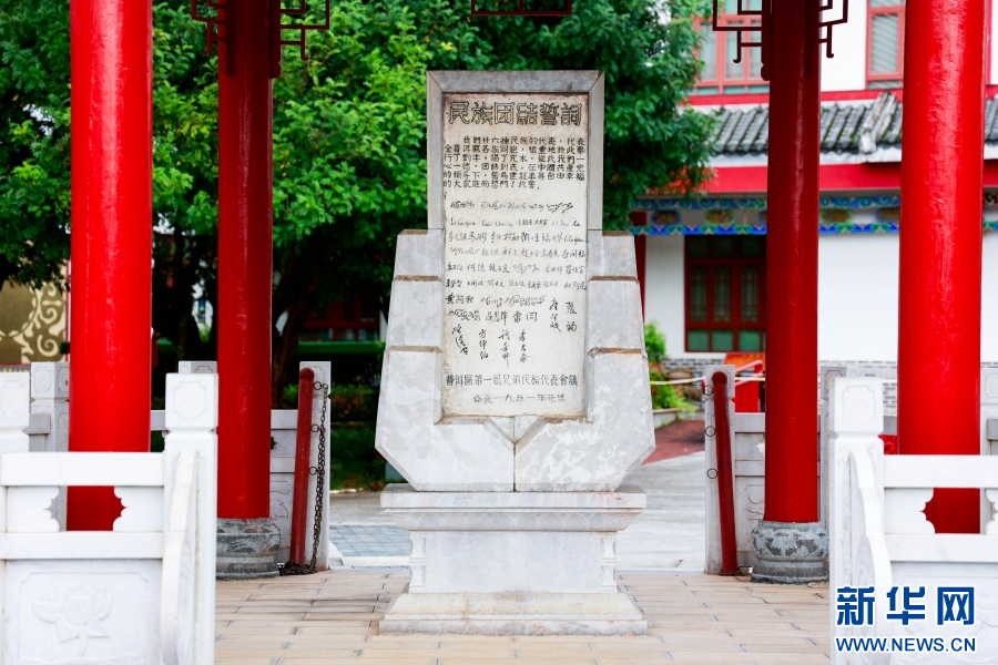 巍然矗立在普洱民族团结园内的民族团结誓词碑,是中国共产党民族政策和民族工作在边疆民族地区成功实践的历史见证。