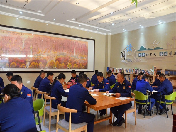 大队始终将“五个认同”教育融入消防员的日常培训中,创新打造“沉浸式”文化阵地,有声学习中积极推广使用国家通用语言,积极弘扬中华优秀传统文化,墙上设置的有声党建墙,消防员们可实现扫码有声朗读和留声,在轻松愉悦的氛围中学习党的民族政策、中国历史、消防知识等。火焰蓝影院定期播放民族团结主题影片,春节期间的“民族联欢晚会”上,指战员自编自演节目,唱红歌、跳民族舞,在欢乐祥和的氛围中增进了解、加深友谊、促进团结、增进认同。