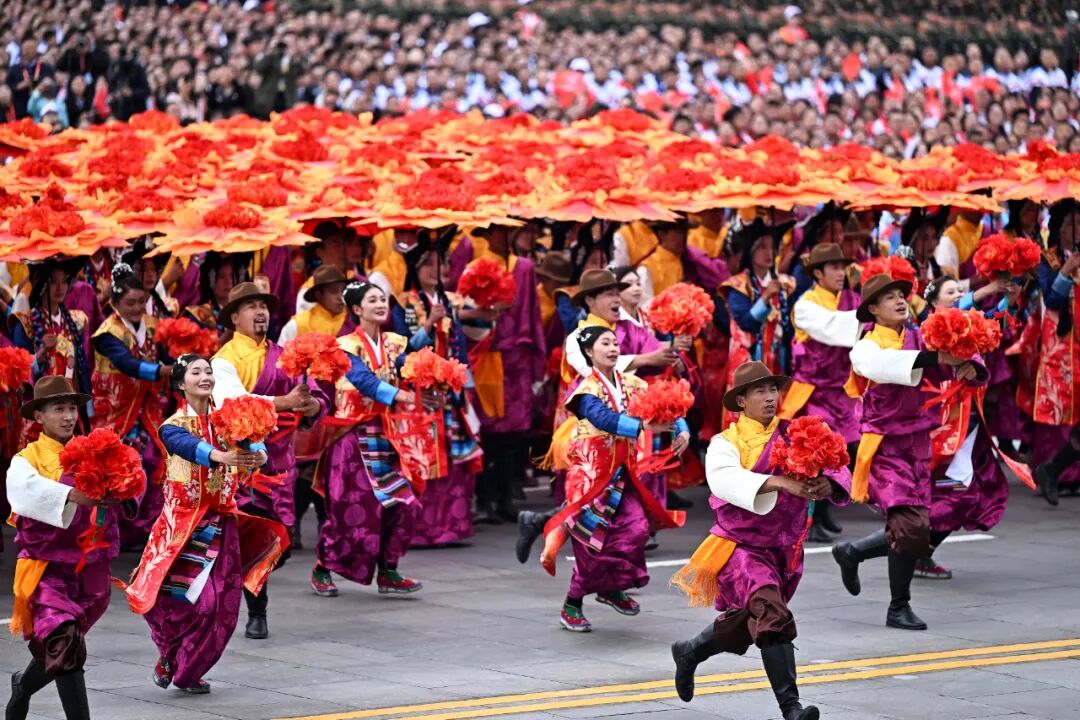 2025年8月21日上午,西藏各族各界干部群众约2万人欢聚拉萨市布达拉宫广场,热烈庆祝西藏自治区成立60周年。这是游行队伍通过布达拉宫广场。 新华社记者 燕雁 摄