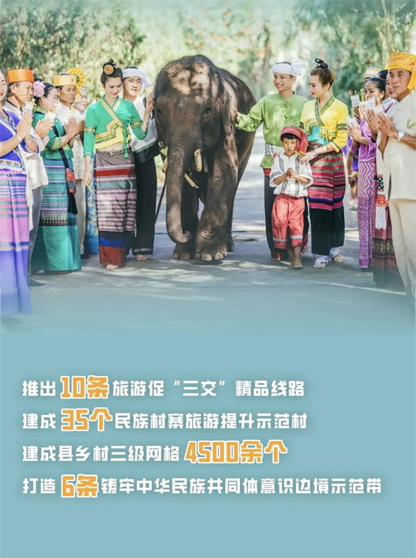推出10条旅游促“三交”精品线路,建成35个民族村寨旅游提升示范村,成功举办全州第八届、第九届少数民族传统体育运动会,《团结花开》获第十二届全国少数民族传统运动会表演项目竞技类一等奖,促进各民族在广泛交往交流交融中像石榴籽一样紧紧抱在一起。
