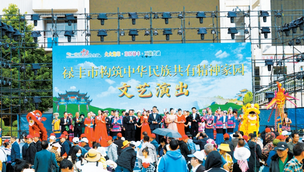 近日,楚雄州禄丰市举办“构筑中华民族共有精神家园”文艺演出。各族文艺工作者与八方游客欢聚一堂,以文艺为桥,铸就民族团结之魂,奏响民族团结进步动人乐章,民族团结情谊在歌舞中升华,为“福禄禄丰”注入深厚文化底蕴,让民族文化之花在禄丰绚烂绽放。