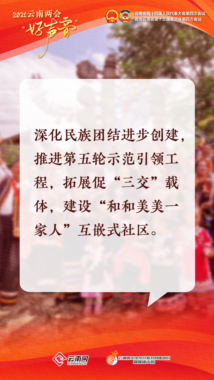 政府工作报告指出,“十四五”时期,云南有形有感有效铸牢中华民族共同体意识,民族团结进步示范区建设结出新硕果。