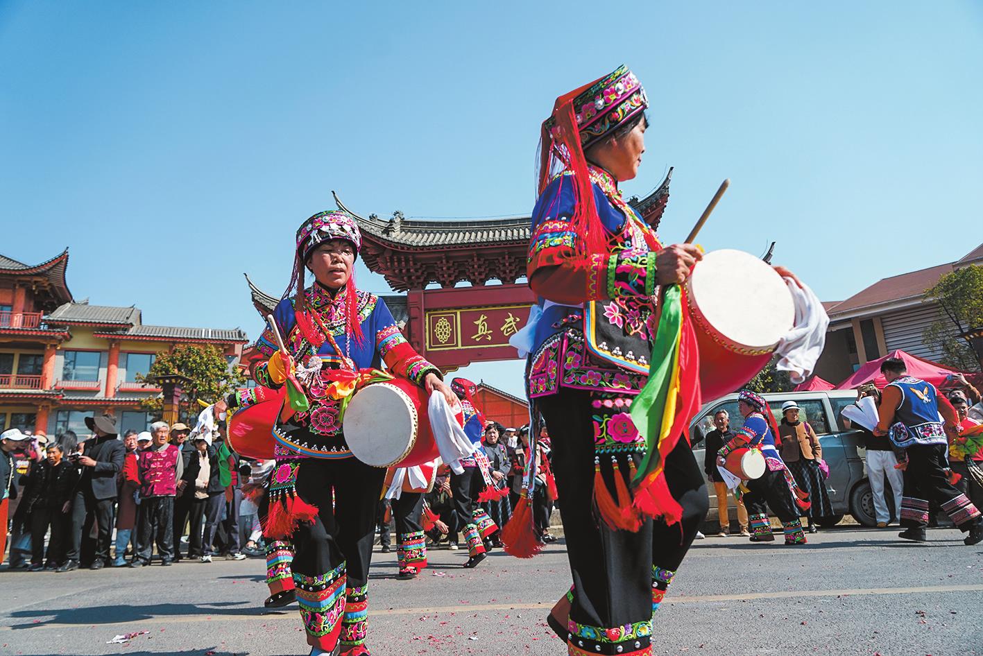 正月初二上午10时,大营街迎土主巡街仪式开启。巡游队伍出发,途经农贸市场、米线美食街等节点。一路上,锣鼓喧天、唢呐悠扬,花灯表演、彝族花鼓舞等民俗节目精彩纷呈。市民和游客纷纷驻足路旁,共同祈愿新的一年风调雨顺、阖家安康。这场庄重而质朴的仪式,不仅是对非遗文化的生动传承,更承载着玉溪人心中那份深深的年味与乡愁。