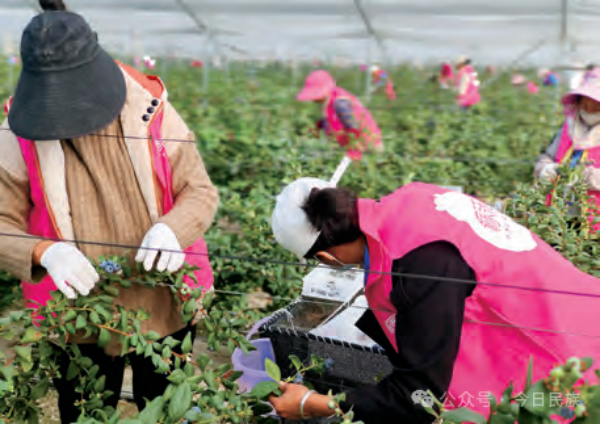 蓝莓种植中,技术员与各族群众互学互鉴、取长补短;采摘季里,各族务工群众协作有序,一边忙碌一边交流种植经验、分享生活趣事,蓝莓园成为各民族交往交流交融的实践课堂。此外,园区内还设置了民族团结文化长廊,各民族生产生活场景鲜活呈现;节庆期间,各族群众身着传统服饰,在蓝莓园中载歌载舞、开展技能竞赛,既传播了民族文化,又增进了情感认同。