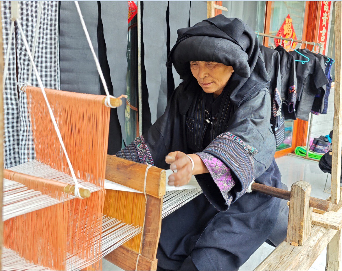 走进乌木龙乡乌木龙村箐边组李从妹家,72岁的李从妹坐在织布机旁织布,手工制作的传统织布机“吱吱呀呀”的声音格外悦耳。走廊上挂着各式各样的民族服装,女士盛装、普通装、新娘装,男装闷襟、对衫,儿童装,绣花鞋,各式的包包和配饰琳琅满目。