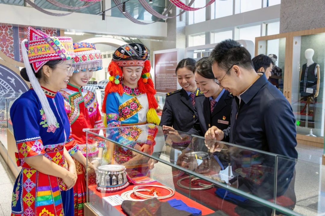 近日,由文山壮族苗族自治州丘北县与中国铁路昆明局集团有限公司昆明车务段共同建设的云南省首个路地共建民族团结进步展陈室在普者黑站建成启用,实现以路助旅、以旅促融,加速各民族交流互鉴、融居共享。展陈室包含民族政策、云南行动、丘北实践、铁路示范等展示内容,为候车旅客提供了一个学习知识、接受民族团结进步教育的文化空间。
