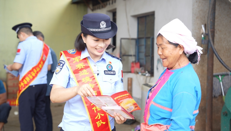 “自军赛边境检查站成立以来,我们始终把维护好民族团结作为我们的一大目标。为此我们成立了一支普法宣传队,会定期到周边的村寨、乡企、学校去进行普法宣传,以提高全民的学法、懂法、守法、护法的法律素养,为维护各民族团结打下坚实基础。”军赛边境检查站副站长张杰介绍。