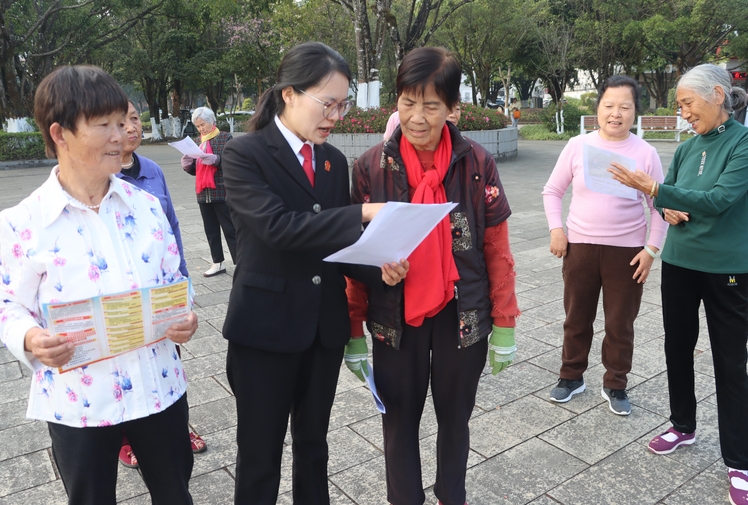 近日,临沧市镇康县人民法院以“民族团结进步活动月”为契机,组织干警赴南伞河畔公园广场,开展法治宣传活动,积极推进民族团结进步示范创建工作。