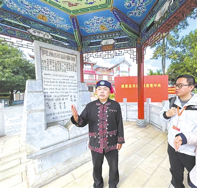 普洱民族团结誓词碑盟誓代表方有富的儿子方财兵讲述收到习近平总书记回信的感受。 王怡摄