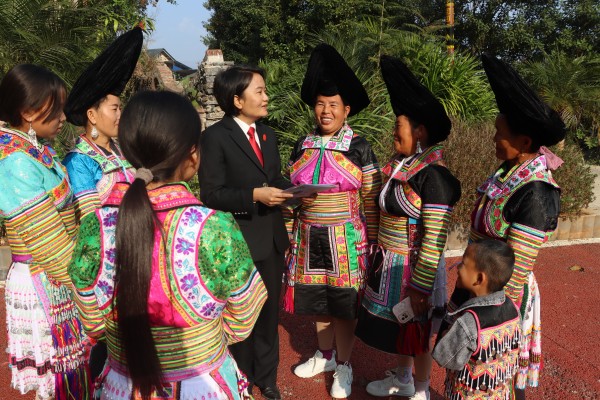 活动期间,法院干警们深入村组活动场所和群众家中,为群众耐心解读《中华人民共和国民法典》《中华人民共和国国家通用语言文字法》等法律法规,面对群众提出的各类法律疑问,干警们不仅用普通话一一解答,还巧妙地结合生活案例,让法治观念如春风化雨般浸润人心。在普及法律知识的同时,干警们积极引导少数民族群众在日常生活中养成说普通话、写规范字的习惯,让普通话成为各民族沟通交流、共享美好生活的有力工具。