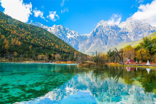 其中,被誉为“植物王国” 的玉龙雪山,终年积雪皑皑,云雾缭绕,山峰连绵起伏,宛如一条银白巨龙横卧大地;世界大峡谷虎跳峡以其惊涛骇浪、集险奇绝于一体的磅礴气势,吸引着无数探险爱好者与游客前来挑战与观赏;万里长江第一湾景色秀丽,江水蜿蜒,如一幅灵动的山水画卷;老君山则以其独特的丹霞地貌、茂密的原始森林,展现出大自然鬼斧神工的魅力;拉市海作为候鸟乐园,每至秋冬,众多候鸟栖息于此,为这片土地增添了灵动与生机。