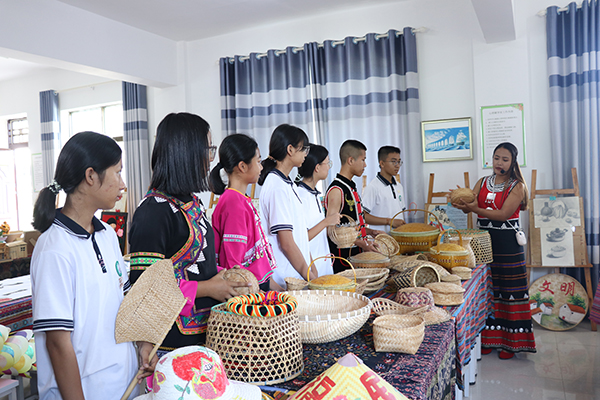 走进临沧市镇康县军赛中学的教学楼,一块块色彩斑斓的文化展板格外醒目,每一幅展板都诉说着多元一体的文化交融。