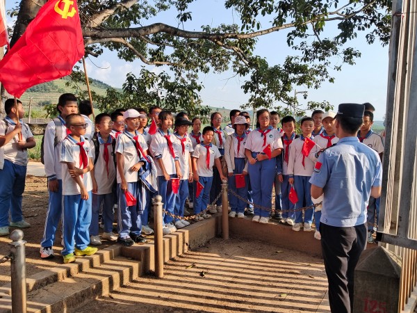 如今,像这样的“行走式思政课”已在全县学校推广,让边疆的故事进入更多课堂。在界桩前,红领巾与党旗、队旗一起在风中飘扬。民警正向孩子们讲述自己亲身经历的跨境缉毒、雨夜巡边的故事。同学们跟着民警的脚步,伸出小手轻轻抚摸界桩,第一次真切感受到“中国”这两个字的分量。