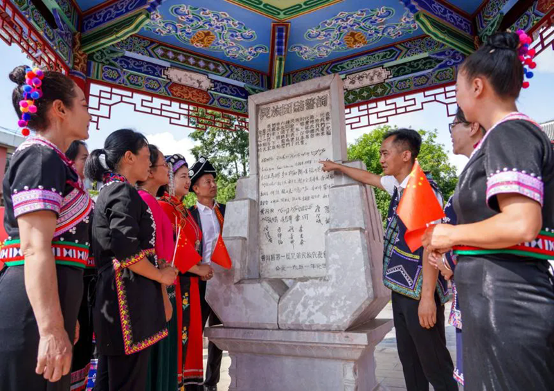 走进云南省普洱市宁洱哈尼族彝族自治县的民族团结园,被誉为“新中国民族团结第一碑”的民族团结誓词碑静静矗立在六角亭内,将边疆儿女心向党、团结一心建家园的历史佳话娓娓道来。