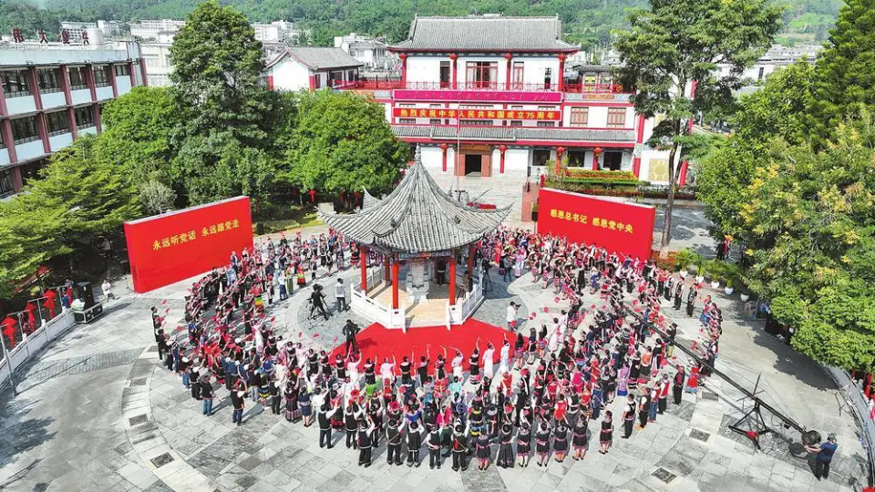 ▲各族群众身着节日盛装,在普洱民族团结园广场上载歌载舞,共同迎接总书记的回信。图片来源:云南网