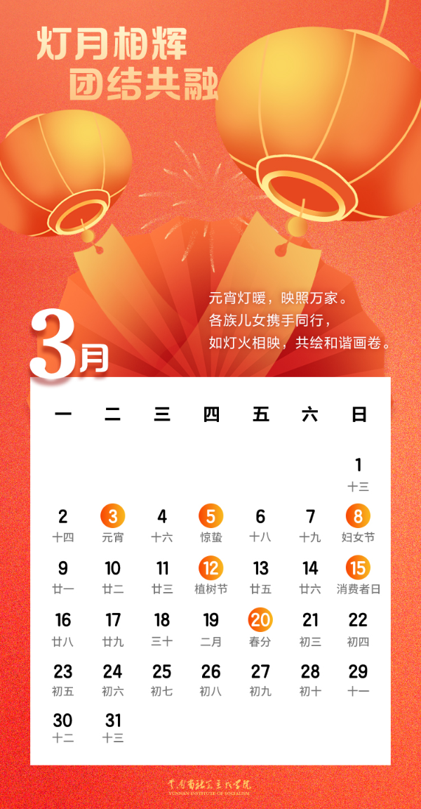 今天,云南省社会主义学院送你一份特别的“见面礼”——《2026年3月月历》。