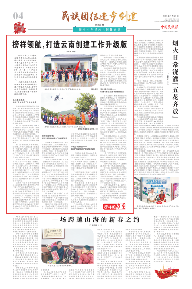 这正是云南民族团结进步创建的底色——从“单一创建”向“特色创新”转变,打造因地制宜、品牌引领的创建生态。“澜沧江畔石榴红”“苍洱处处石榴红”“乌蒙同心”……一个个有辨识度的创建品牌,把“示范区”“示范单位”具象到各县区市、乡村社区及各行各业。