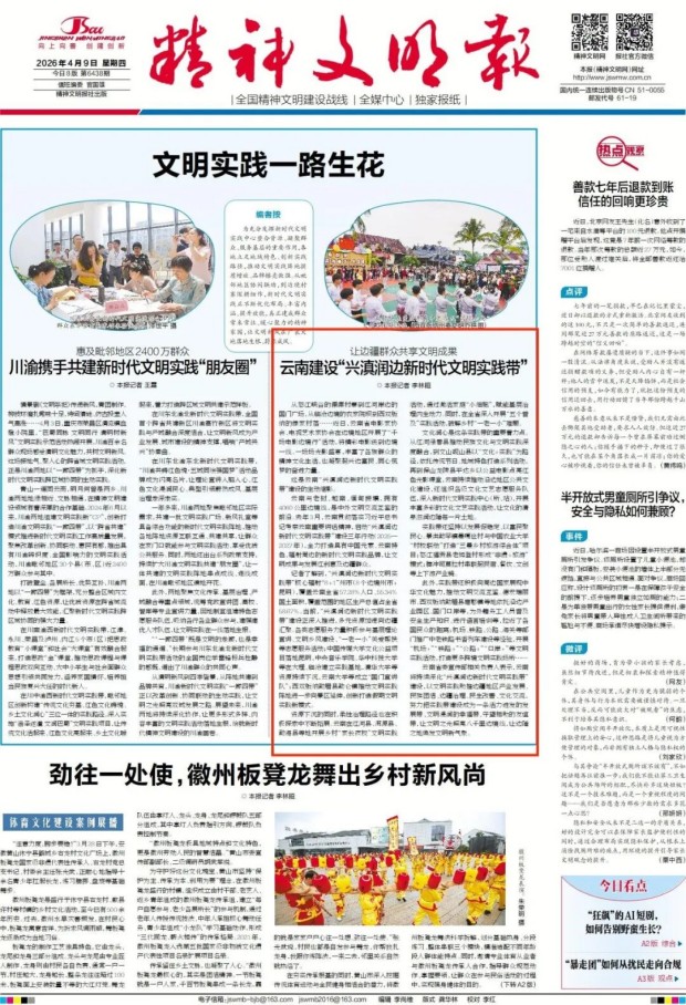 云南与老挝、越南、缅甸接壤,拥有4060公里边境线,是中外文明交流互鉴的前沿。去年3月,云南贯彻落实习近平总书记考察云南重要讲话精神,启动“兴滇润边新时代文明实践带”建设三年行动(2025—2027年),全力打造具有中国元素、云南特色、辐射周边的新时代文明实践品牌,让文明成果与发展红利惠及边疆群众。